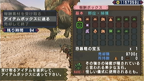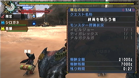 × [PR]上記の広告は3ヶ月以上新規記事投稿のないブログに表示されています。新しい記事を書く事で広告が消えます。 どうも、隈宏です。 やってやりましたよ。轟竜→迅竜の順でどうにか。 残り時間とかもうね。 ティガの方が特に苦手なんですよ。ナルガ先に倒そうとすると後ろから突進とかザラだし。 確認しながらだと攻撃のチャンス見つける前に攻撃される程度の腕前。 「残り時間が5分を切りました」とか出てからの私の狼狽っぷりときたら無いわけですよw 頭の中には安西先生降臨ですよ。スラムダンクろくに読んだ事も無いくせにねー 因みに、ジョー撃破時間は約20分でした。 捕獲しようと思って落とし穴・麻酔玉当てるも落ちず。こなくそ、と思って気刃斬り当てたら倒れました。 何という嫌がらせ。 あと、装備はこんな感じです。 武器がもうひとつ、と思われるかもしれませんが、HR5だと上等な方だと思います。 ランバラルム好きだけど、切れ味がね(;´Д`) これより良いモノ、というとイベント武器のライトニングワークス、覇王剣辺りだろうか。 と思ったら雷狼竜の上位素材が要る時点でHR6相当ですね。 これで心置きなくHR6目指せるってモンですよ。 ★7の未クエ潰したらHR6昇級に挑戦しますね。 それではこの辺でヾ(・ω・)ノ" おまけ レイアさん、4%(攻略Wikiより)だからって私の運の無駄遣いやめてくだしあ PR